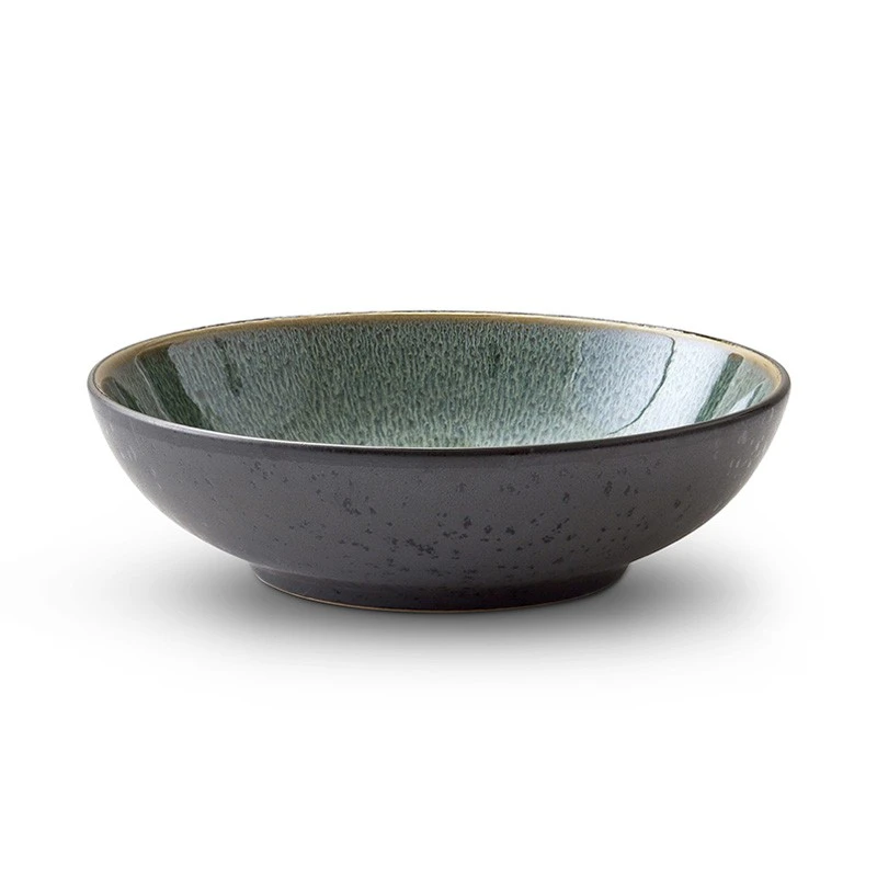 Bitz pastaskålen er fremstillet i robust stentøj med mat sort yderside og blankgrøn inderside.