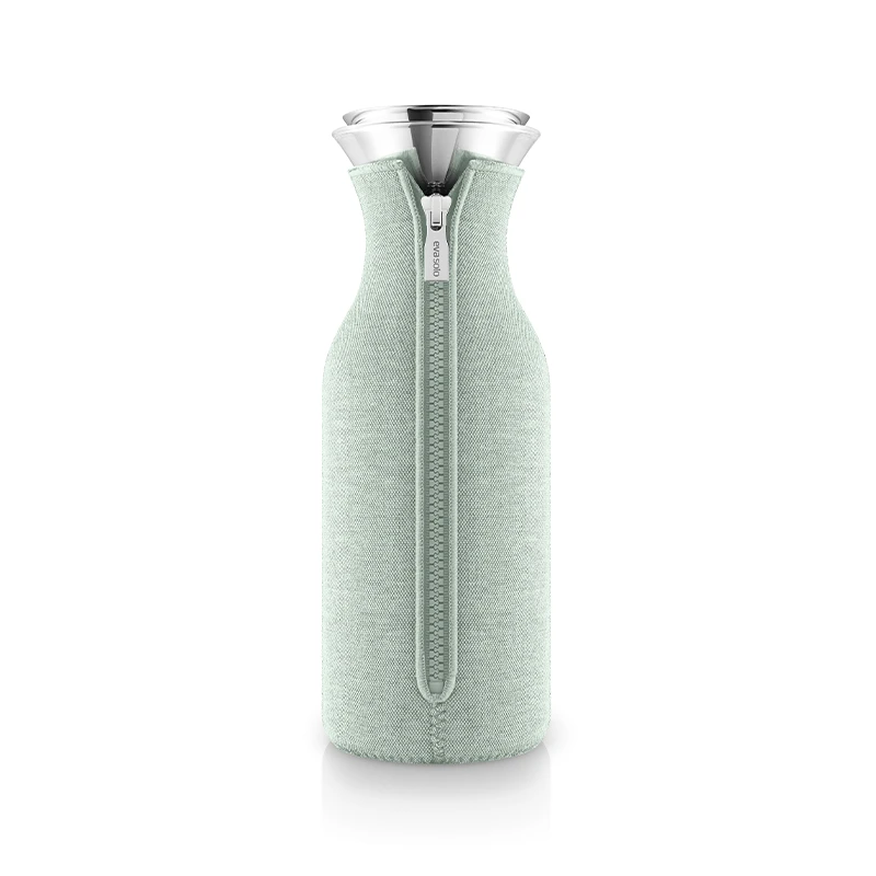 Den fine køleskabskaraffel fra Eva Solo er unik i sit udtryk og er 100% drypfri. Den passer i de fleste køleskabslåger, og er enormt velegnet til kolde såvel som varme drikke. Sæt den fine kande på bordet under middage med gæster eller til aftensmaden i hverdagen – den kan bruges til det hele. Den fine lynlåslomme er med til at holde på varmen eller kulden og sørger for, at man hverken fryser fingrene eller brænder sig. Alle dele til karaflen tåler maskinopvask. Dragten kan vaskes på skåneprogram ved 30 grader, men vi anbefaler håndvask.