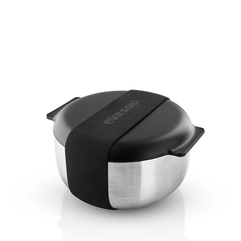 Er du på farten, og skal have frokost, så er denne nye To-Go termomadkasse fra Eva Solo lige sagen. Mindsk brugen af alufolie og fryserposer ved at udskifte dem med et smart, praktisk og miljøvenligt alternativ. Takket været termoskålen og det dobbeltvægget låg holder madkassen din mad kølig i længere tid. Du kan bruge madkassen til gårsdagens rester, salater, frugt, grønt eller en lækker sandwich. Madkassen bør dog ikke bruges til meget varme retter. Madkassen tåler en tur i opvaskemaskinen på nær elastikken. Madkassen tåler ikke mikrobølgeovn.