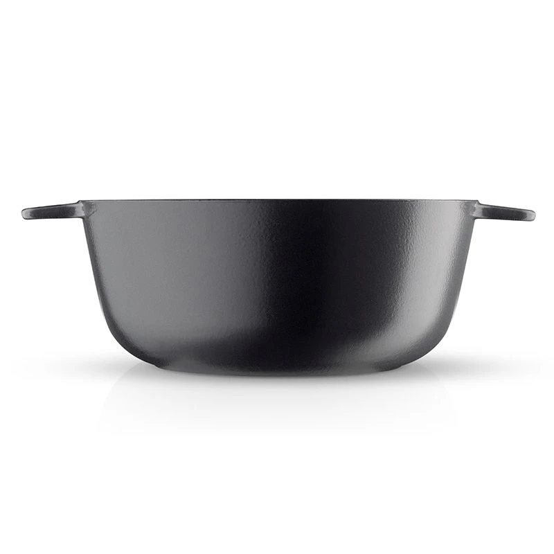 Letvægtsstøbejernsgryde fra Eva Trio. Støbejern er ideelt til retter hvor der skal langtidssteges.