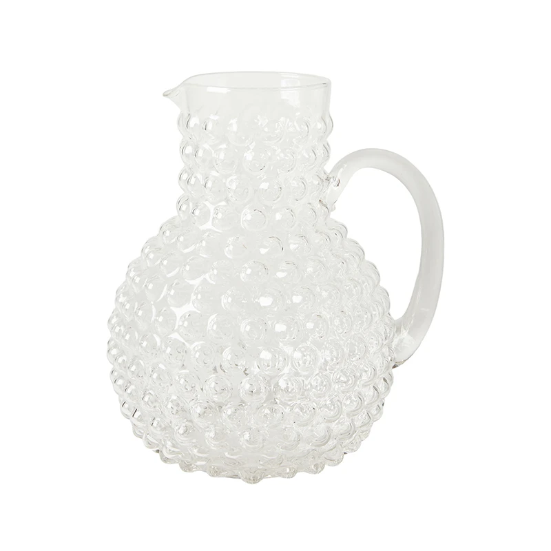Anderledes og charmerende glaskande med skønne runde former. Med denne fine kande er det ikke kun synssansen der berøres. Prikkerne på kanden giver en taktil overflade, som er sjov, anderledes og helt sikkert er et produkt, som skiller sig ud på bordet. Servér limonade, vand eller noget andet lækkert for dine gæster og lade dem se og røre den skønne kande.