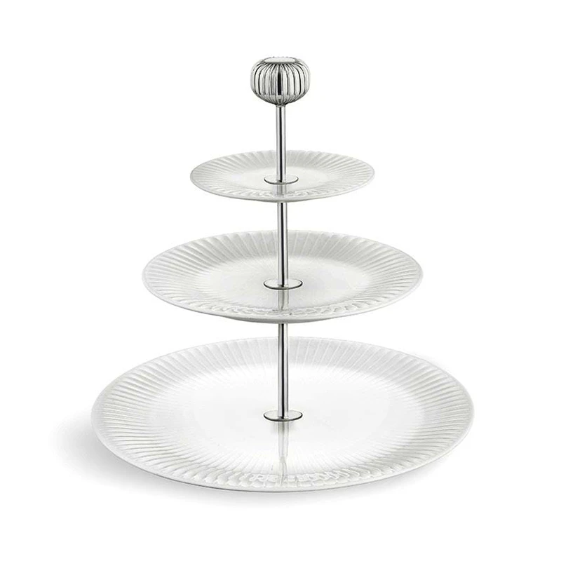 Etageren er en smuk opsats i 3 niveauer der gør sig umådeligt elegant på bordet. Giver en flot præsentation af kager, chokolade, frugt, oste eller som et alternativt tapas-fad.