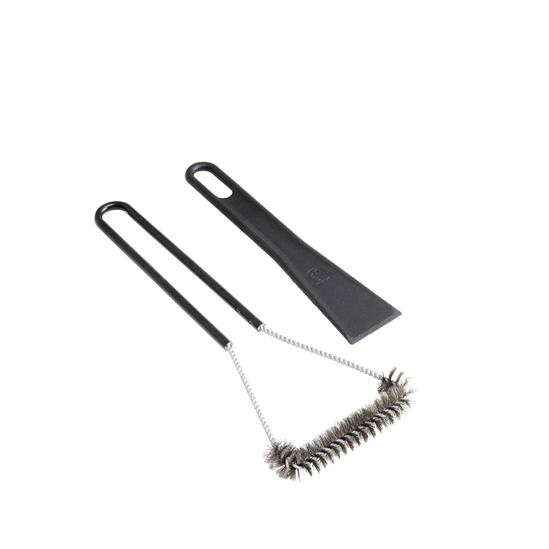 De skarpe kanter på skraberen fjerner nemt mad- og fedtrester, hvor børsten fjerner snavs mellem ristene.