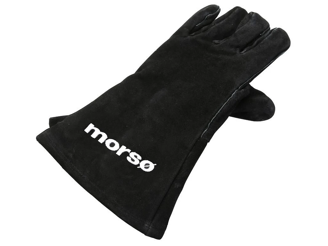 Morsø Pejse/grillhandskevenstre hånd Fremstillet i sort, kraftig ruskind. Velegnet til håndtering af varme cocotter og ved grill. Kan aftørres med fugtig klud.