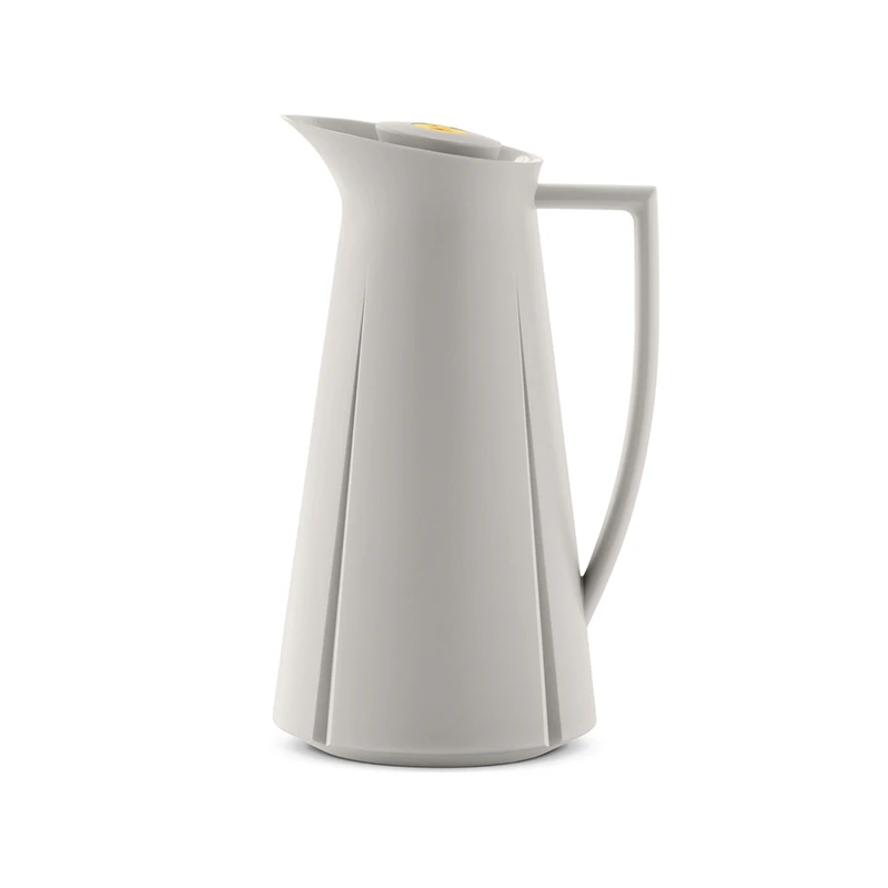 Den velkendte termokande fra Rosendahls Grand Cru serie er nu kommet i den fineste varme grå farve, som uden tvivl vil bringe et strejf af moderne, skandinavisk elegance til kaffebordet. Grand Cru termokanden er kendt for sit minimalistiske, tidløse design og høje kvalitet. Hele Grand Cru serien er kendt for at have mad og drikke i fokus, men øjet falder nu alligevel hurtigt ned langs de karakteristiske riller. Selve termokanden kan rumme 1 liter og har en smart guldfarvet trykknap, så kanden holder på varmen i længere tid, da man ikke behøver at skrue låget helt af, når der skal skænkes kaffe eller te. Dæk det smukkeste og mest elegante morgenmadsbord med både tallerkener, krus og glas fra Grand Cru serien. Termokanden er den perfekte gaveidé til kaffeelskeren!