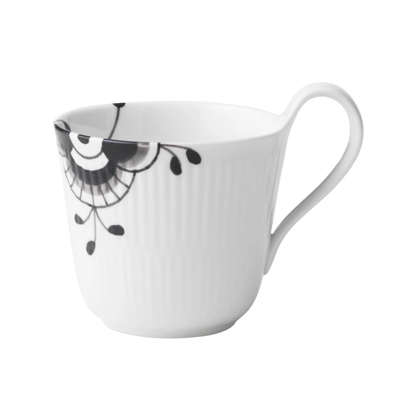 Dette elegante krus med høj hank er perfekt til alle dine favoritdrikke. Invitér en ven på en kop kaffe, te eller kakao og nyd en dejlig eftermiddag sammen. Kollektionen Sort Mega Riflet er et smukt bevis på, at selv de mest klassiske traditioner kan tåle at blive udfordret. Stellet går godt sammen med de andre kollektioner fra Royal Copenhagen.