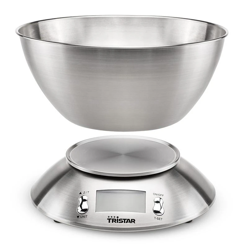 Tristar køkkenvægt op til 5 kg med 1 grams interval i rustfrit stål.