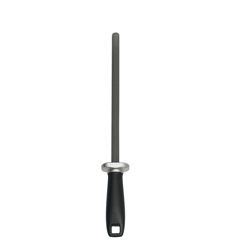 Vedligehold dine knive og sakse med Zwillings keramiske slibestav, som nænsomt sliber dine knive og sakse, så de hele tiden er skarpe og ikke mister deres skær. Det sorte håndtag sørger for et godt og sikkert greb, imens du trækker knivens blad over staven. Den kromfarvede krave for enden af skaftet fungerer som fingerbeskytter. Ude i skaftets ende er der et lille praktisk ophængningsøje. Denne brugervenlige og keramiske slibestav kan endda bruges til selv de mest sensitive blade. Zwillings slibestav er et uundværligt værktøj til jævnlig vedligeholdelse af dine knive.